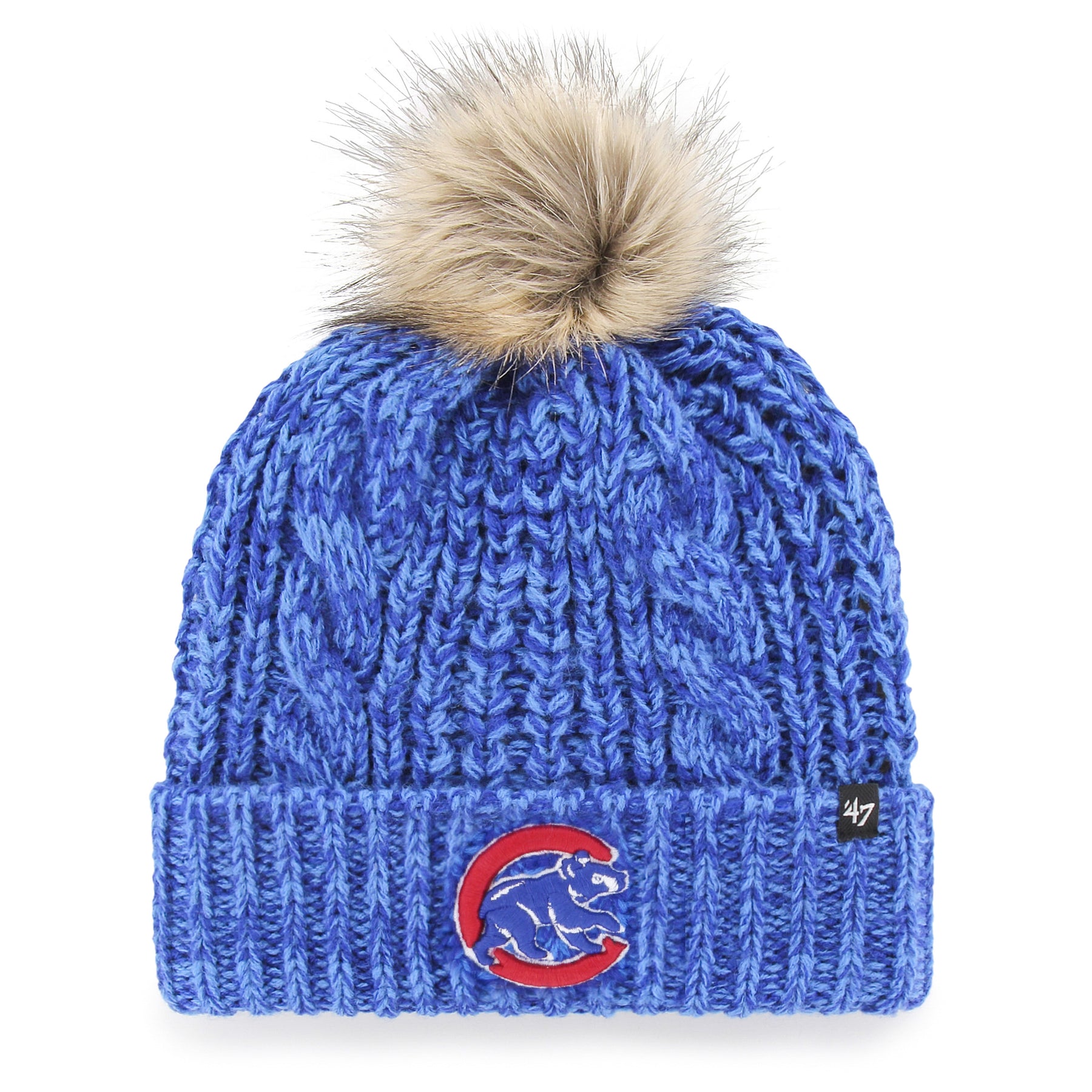 Experience ultimate warmth and Cubs pride in this luxurious Meeko royal blue winter knit beanie with a trendy pom detail.