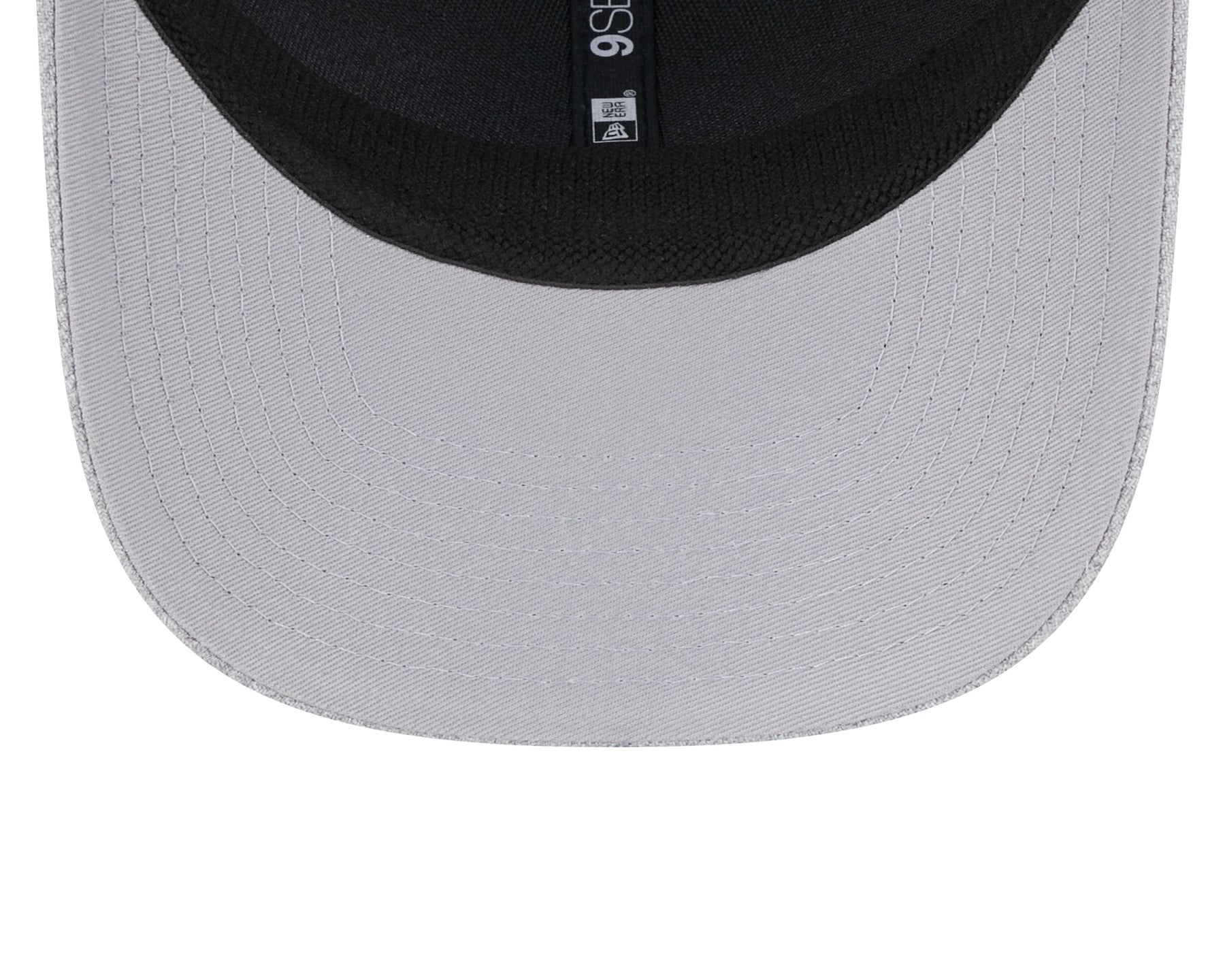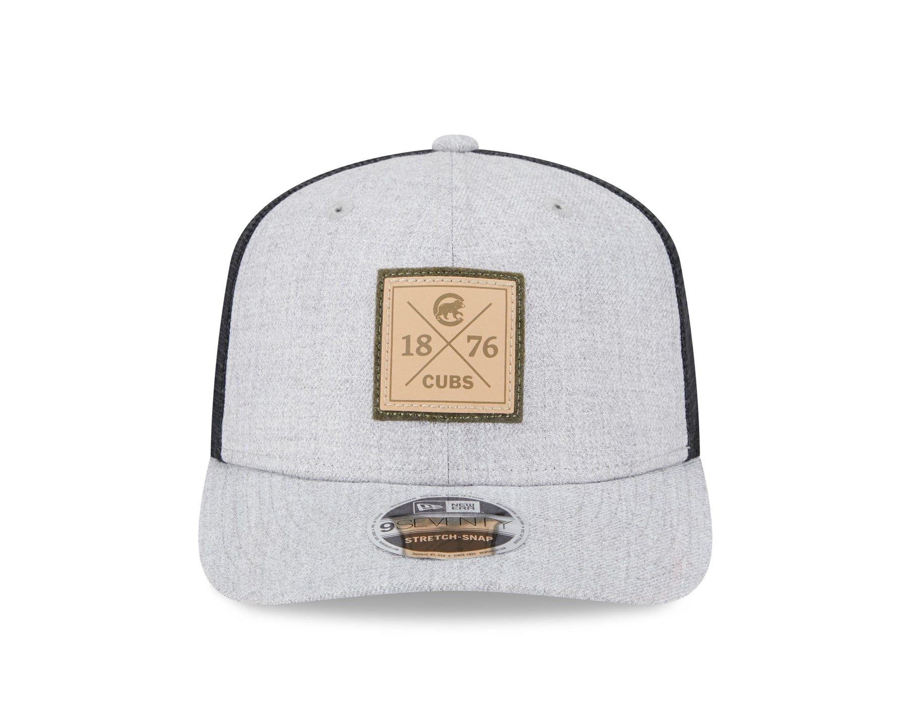 The Chicago Cubs New Era Leather Patch Heather Grey 9SEVENTY Snapback Cap combines a trendy heather grey design with a stylish leather patch, making it a perfect accessory for any Cubs fan looking to showcase their team pride.