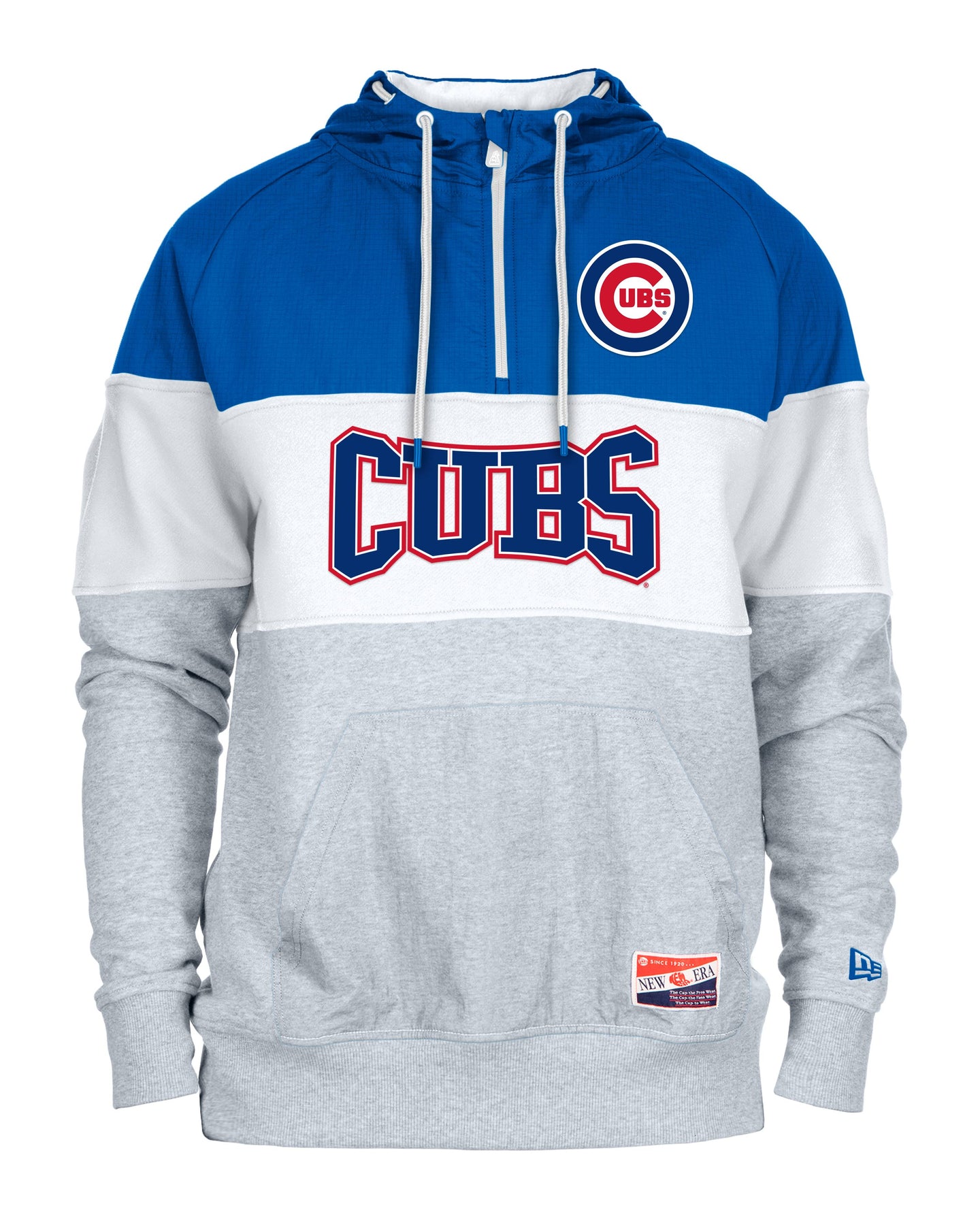 Introducing the ultimate fan hoodie: Chicago Cubs New Era Men's Bullseye Logo 1/4 Zip Hoodie. Featuring a winning combo of royal blue, white, and grey, this color blocked design brings style and team spirit to any game day.