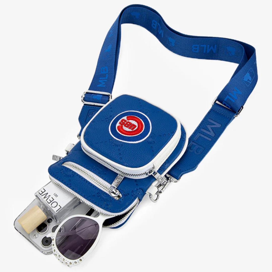 Perfect for Cubs fans on the go, this compact crossbody bag delivers team style in a sleek, minimalist design. Crafted from durable synthetic leather, this officially licensed MLB bag features the Cubs logo prominently displayed on the front pocket. The smart dual-pocket front design and convenient slip pockets provide easy access to your phone and other essentials, while the secure top zipper keeps everything safe. With an adjustable and detachable crossbody strap, this versatile mini bag transitions effortlessly from game day to everyday adventures, letting you show your Cubs pride wherever life takes you.