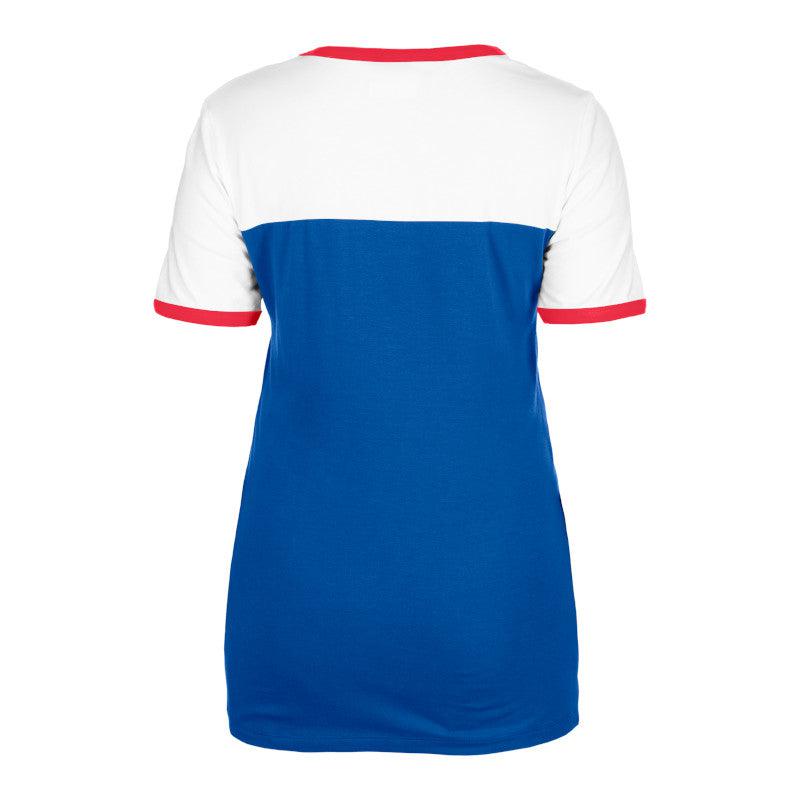 Elevate your Cubs pride with the Chicago Cubs New Era Women's Blue and White Ringer Tee. This stylish tee combines the classic blue and white color scheme with the Cubs logo, making it the perfect choice for fashionable fans.