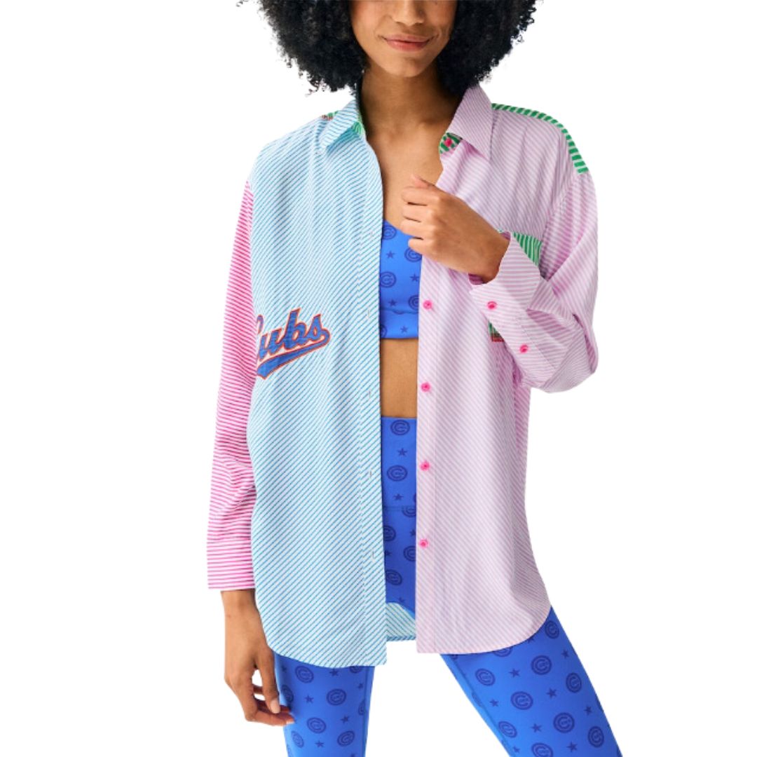 This Chicago Cubs multicolor button down is the perfect addition to any outfit! The oversized Chicago Cubs logo pops against the vibrant striped fabric, giving this versatile shirt a game-winning edge. Whether you are catching a game or running errands, show your Chicago Cubs pride in style!